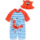 Baby boy Swimsuit Toddler One Piece Zipper Swimwear UPF 50+ Sun Protection Sunsuit Infant Bathing Suit with Sun Hat