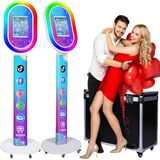Photo Booth for iPad 10.2'' 10.5'' 10.9" 11" 12.9" 13" Shell Stand Selfie Station Customized Logo Photobooth Machine with Beauty RGB Ring Light and Flight Case for Events Wedding Parties