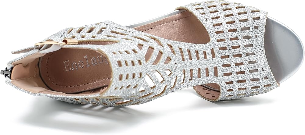 Enelauge Women's Gladiator Sandals Strappy Hollow Out Chunky High Heels Open Toe Ankle Strap Dressy Pumps with Back Zip Cutout Heeled Bohemian Summer Party Sandals