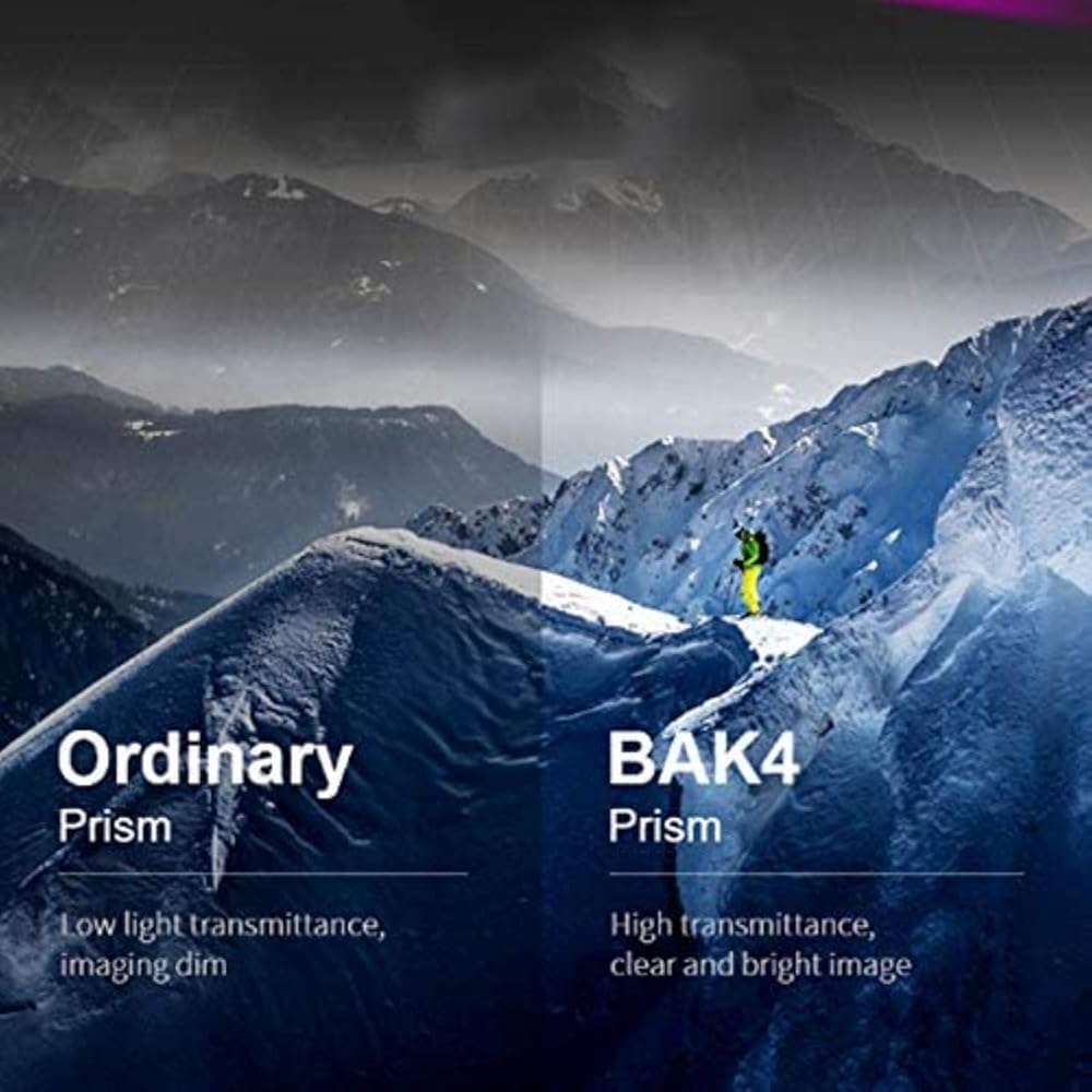 [HIGH QUALITY]Multi coated optics dramatically increase light transmission for brighter images with high contrast review and high resolution, while the prisms made of BAK-4 glass will give you enhanced color fity. long-lasting