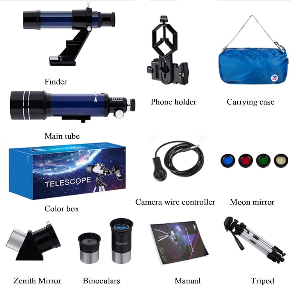 Portable & Light-weight:Compact, lightweight, weighs 1.72 pounds, easy to carry. Equip moon filter, reduce glare, get high quality clear image. With adjustable tripod and phone adapter, enhance stability and comfort. Astronomical telescope is ideal for kids adults astronomy beginners outdoor use to observe night scenes and stars<br