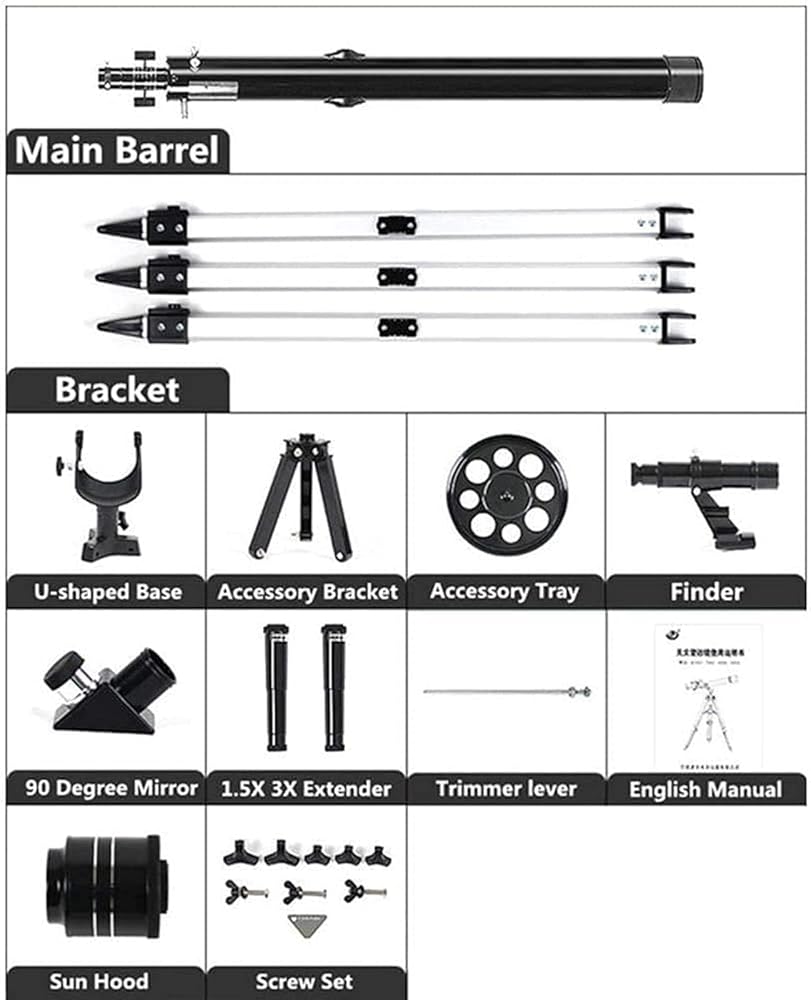 1. The refractor has a strong focal length, a large field of view, and a strong resolution.Multilayer optical coating,Refractive optical system,high light transmittance, and enhanced image brightness and clarity.Aluminum tripod