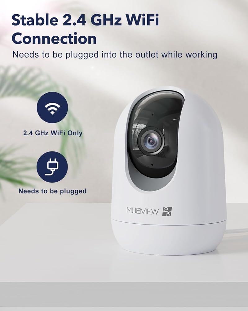 MUBVIEW 5MP Plug-in Security Camera Indoor + Pet Camera with Phone App, WiFi Cameras for Home Security Camera for Dog/Baby Monitor/Elder Pan Tilt, 2.4G, 24/7, 2-Way Talk, Human Detection