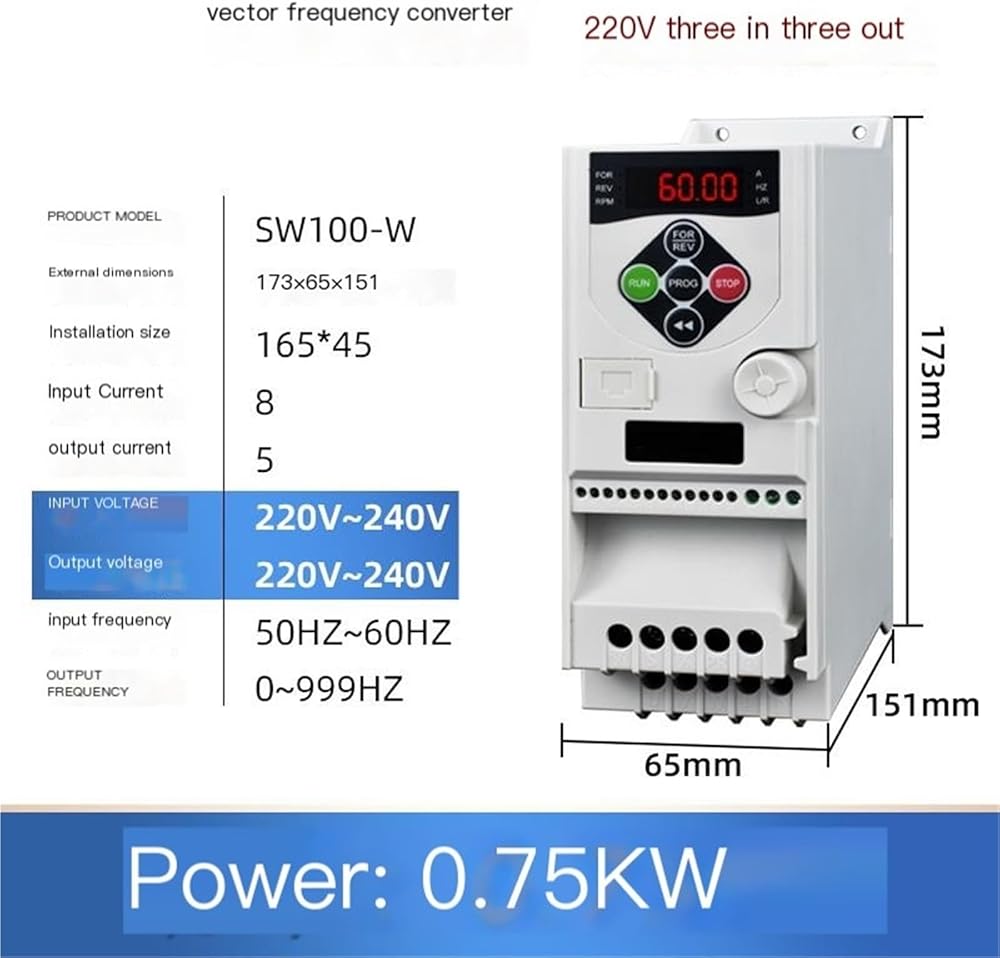 SU800 Inverter 220V 380V 0.75KW/1.5KW/2.2KW Variable Frequency Drive Converter for 3 Phase Motor(0.75KW 380V)