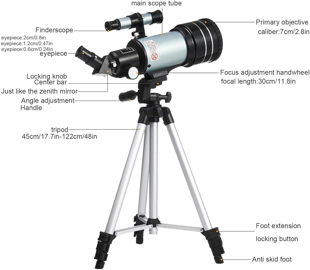 Adults Kids Telescopes for Astronomy Professional High Magnification 70mm Aperture High Power Refraction Telescope Portable Monocular Scope with Tripod for Beginners Space Observation