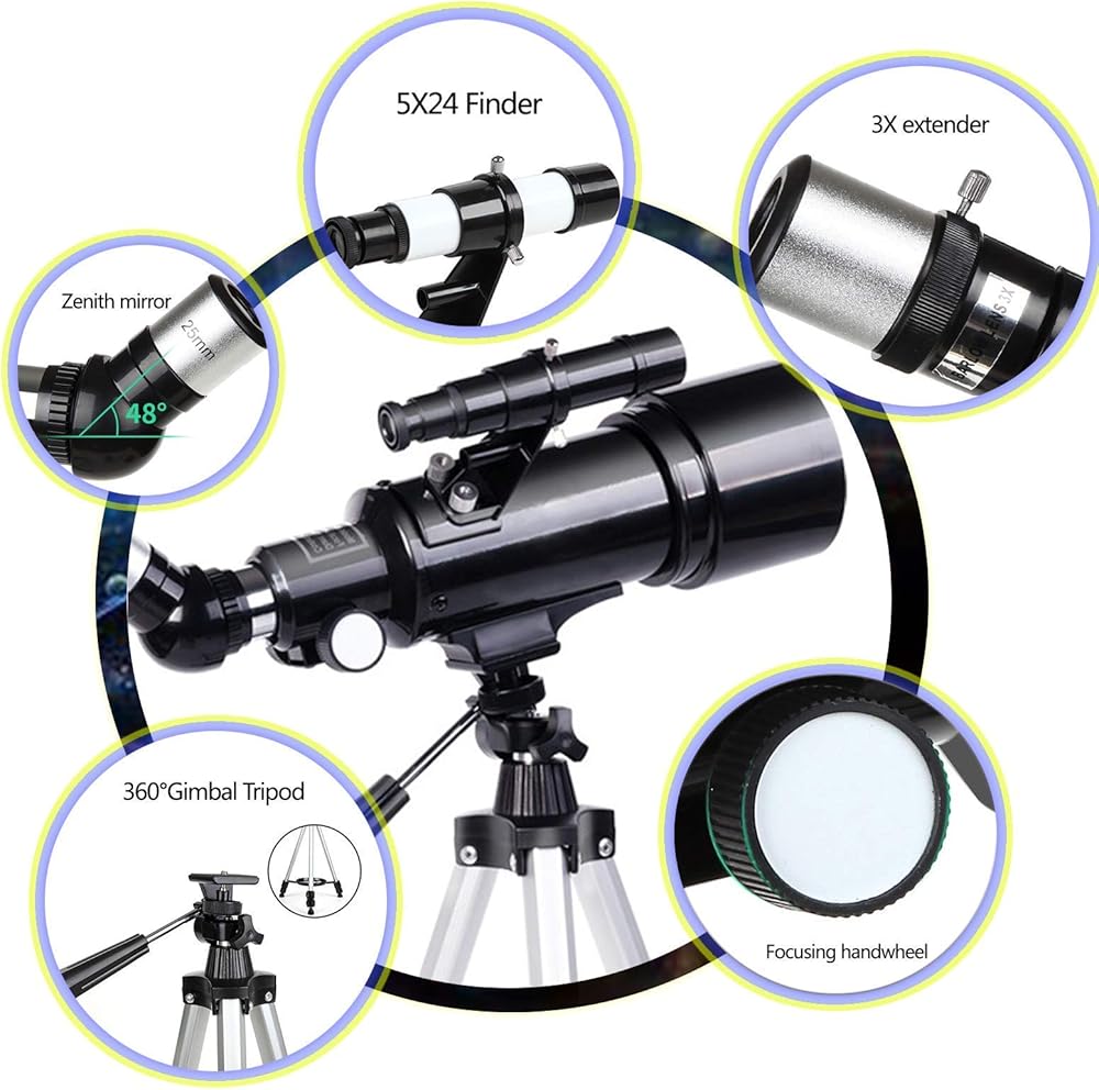 ★[Ultra-clear Telescope]- With 400mm Focal Length, 70mm Aperture And Multilayer Glass Green Coated Optics, Which You Can Capture More Clear Picture And Protect Your Eyes.