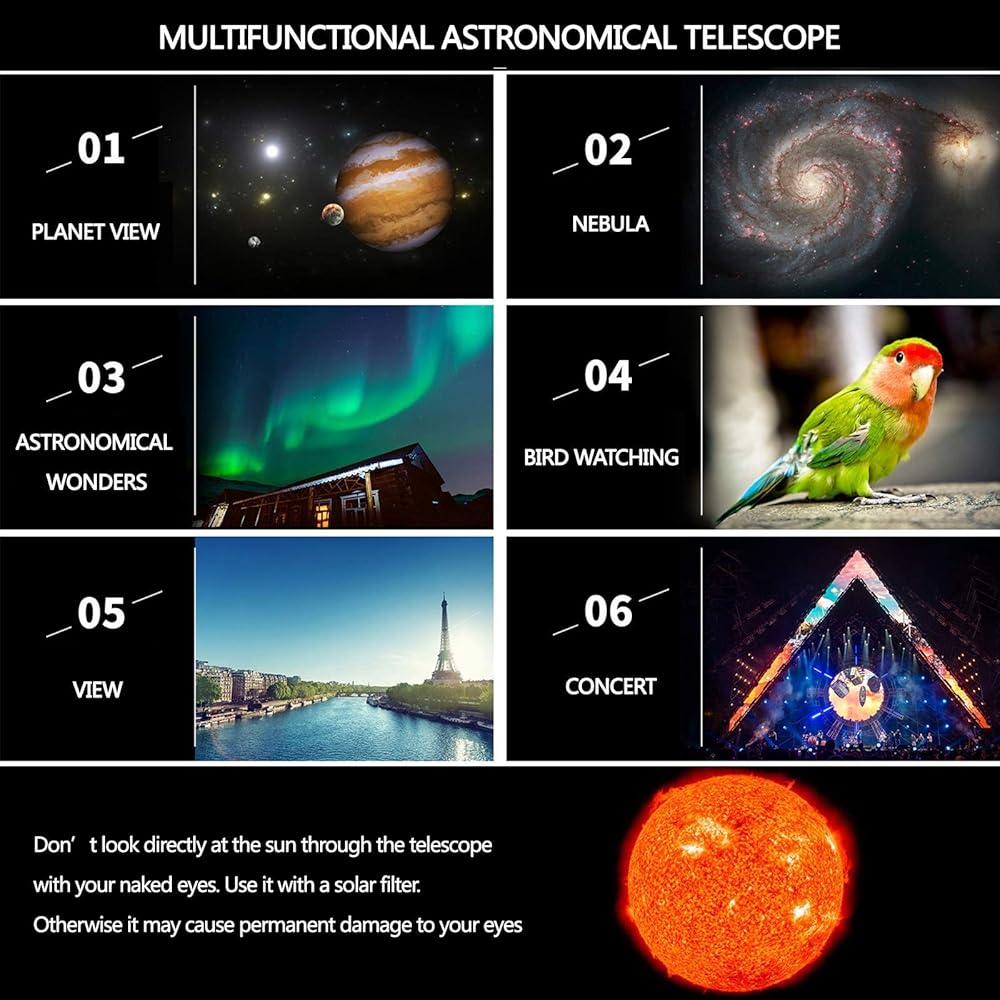 ★[EASY TO CARRY]- Our Telescope Comes With A Backpack, You Can Take Telescope Outside Easily With It. Especially For Climbers, Hiking, Outdoor Sports Or Just Plain Fun Watching Concerts Or Sports.