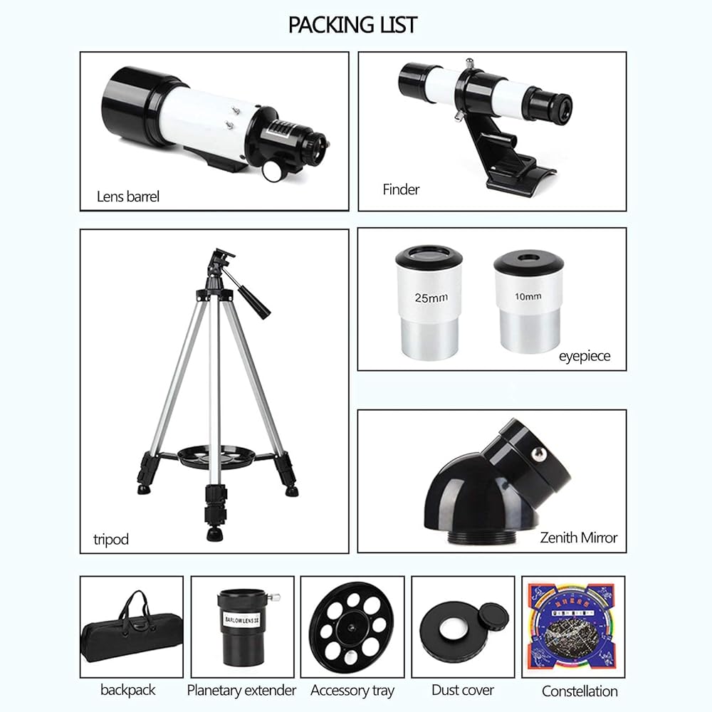★[ PROFESSIONAL EYEPIECE] - There Are Two Telescope Eyepieces, The K25mm Eyepiece Magnified 16 Times, K10mm Magnified 40 Times. Having Good Transparency, You Can Correct Chromatic Aberration, Also Reducing The Position Of Astigmatism And Distortion.