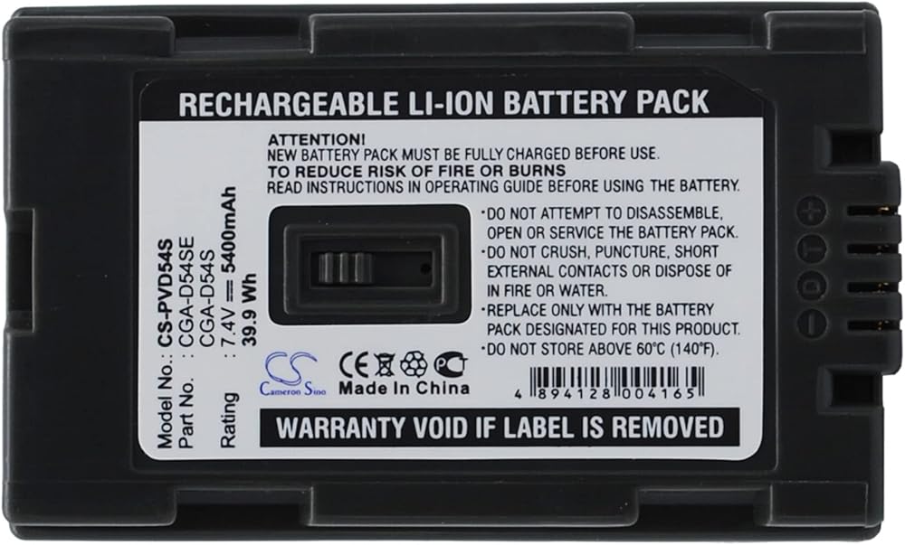 Compatible with Battery for Panasonic CGA-D54, CGA-D54S, CGA-D54SE, CGA-D54SE/1B, AG-HVX200P, AJ-PCS060G(Portable Hard Disk, NV-DS29, NV-DS29EG, NV-DS30, NV-DS30A (5400mAh)