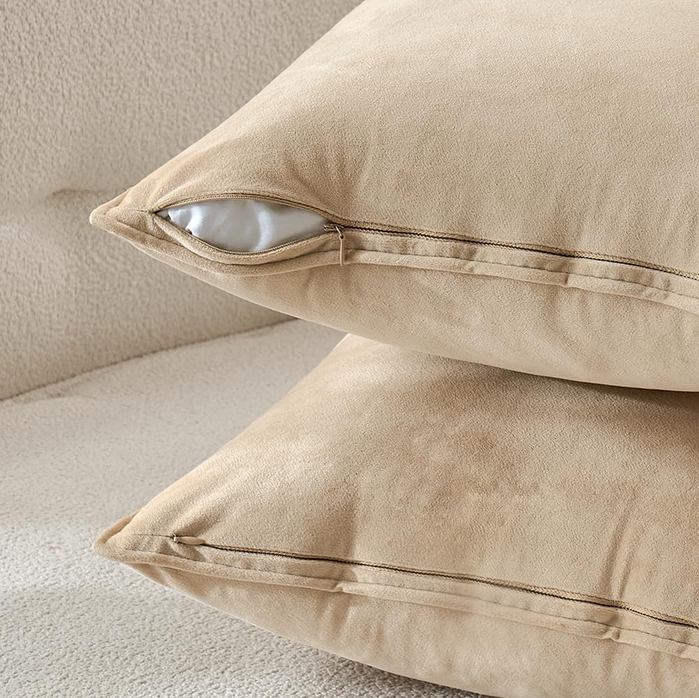 Material:Velvet. very soft and environmental. Zipper is hidden and smoothly. All fabric edges are sewn well to prevent fray and ensure durability.Suitable for sofa,bed,home,office.