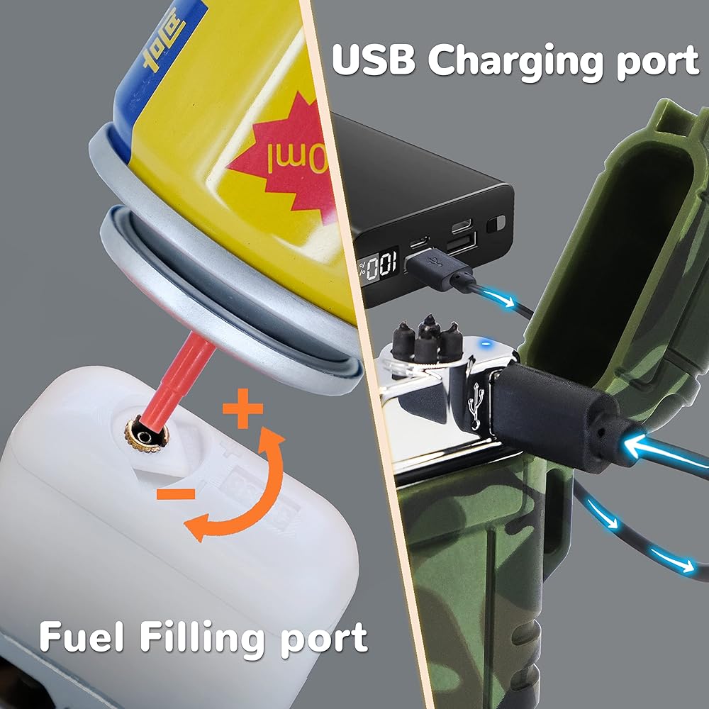 WHAT YOU CAN GET - Package included: 1 usb ARC lighter + 1 butane torch lighter, 1 usb cable and 2 Lanyards. The usb chargeable lighter is a perfect outdoor adventure tool. The refillable butane torch lighter is a better choice when you need to burn thicker branches or wood. Come with a lanyard for better carrying during camping, hiking, traveling