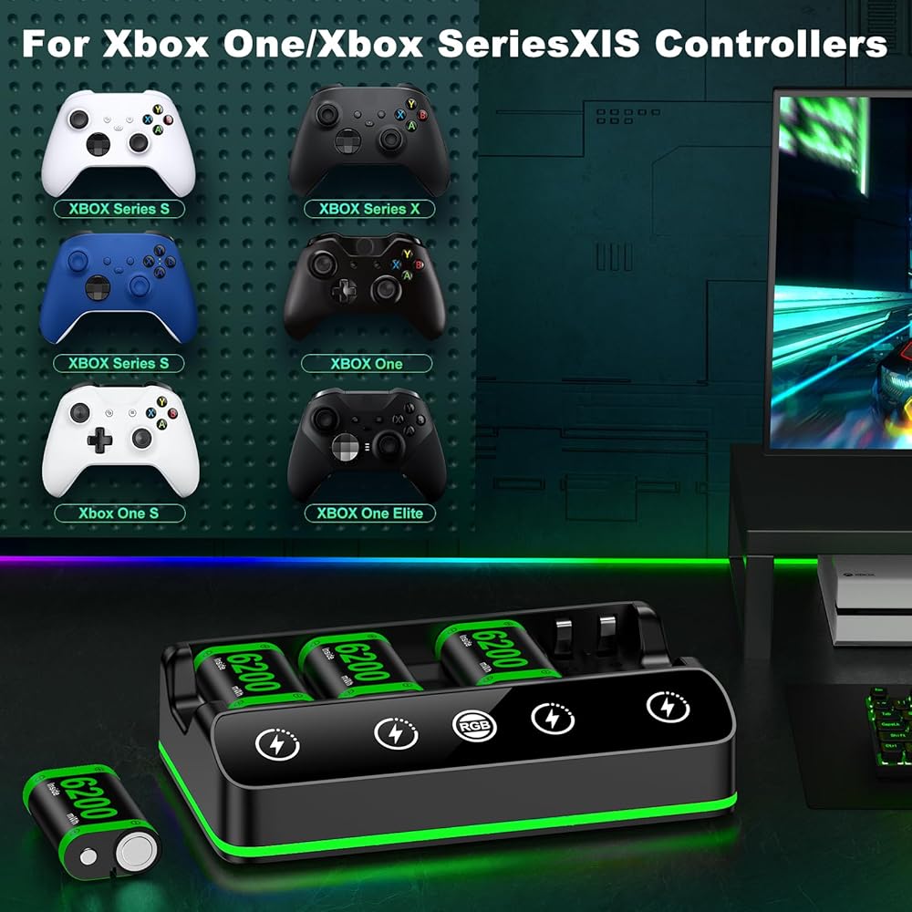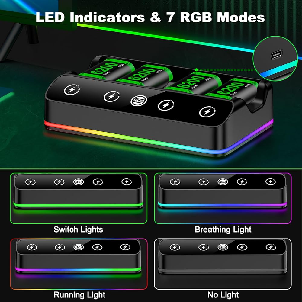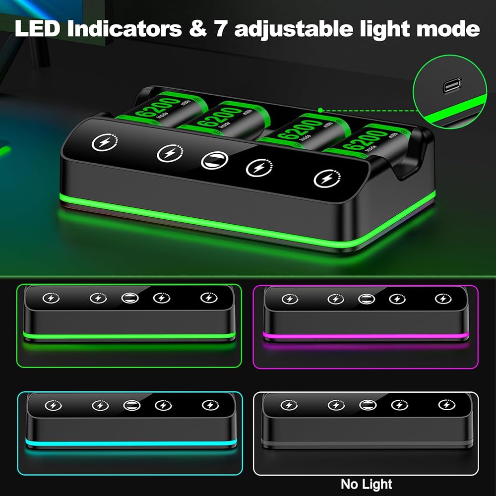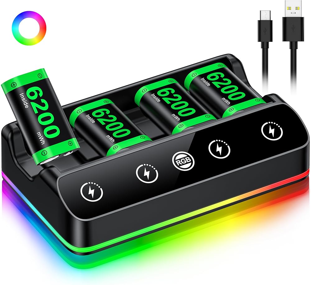 Rechargeable Battery Packs Compatible with Xbox One/Series S/X Controller, 4 x 6200mWh Rechargeable Battery Pack with Charging Station and USB C Cable Charger 360 Consoles
