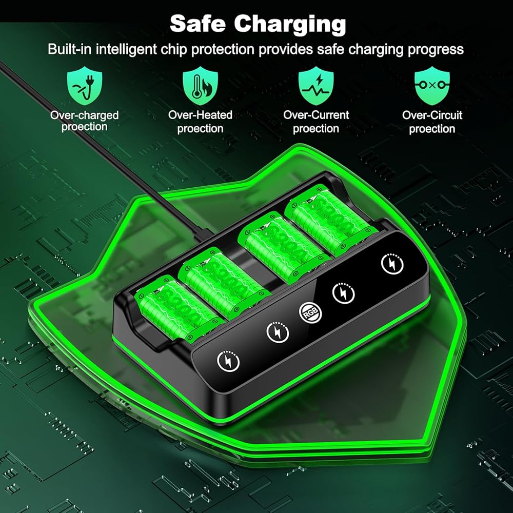【Safe Charging and Protection of Xbox Controller Rechargeable Battery】This Xbox controller battery charger has Over-Charged, Over-Current, Over-Heated, Short-Circuit protection functions, which can extend the battery life and allow the battery to be charged 1000 times without frequent purchases. The battery protection function ensures the safety of over-night charging