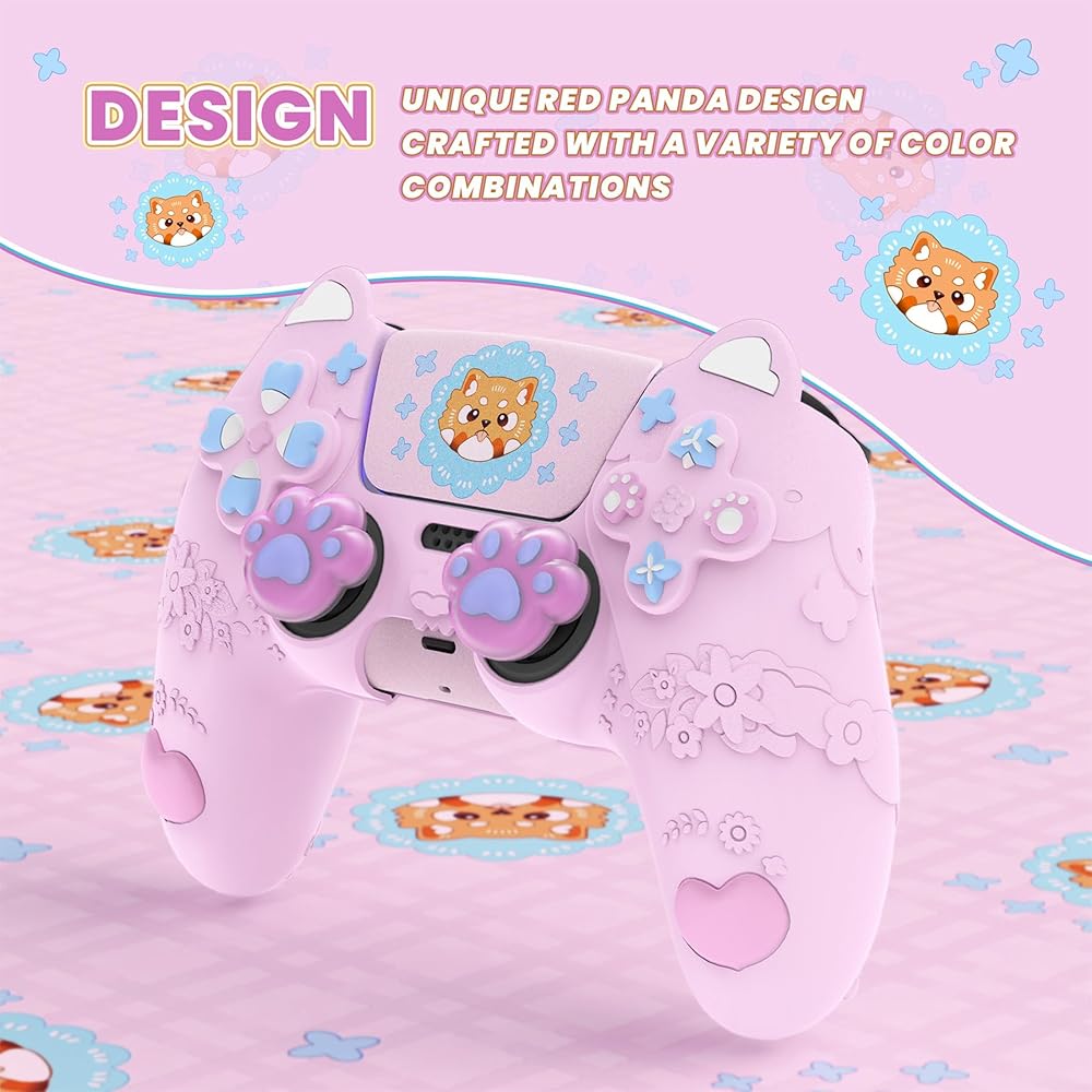 The PlayVital Spring Lesser Panda Series Silicone Cover offers premium protection and style for ps5 controller.