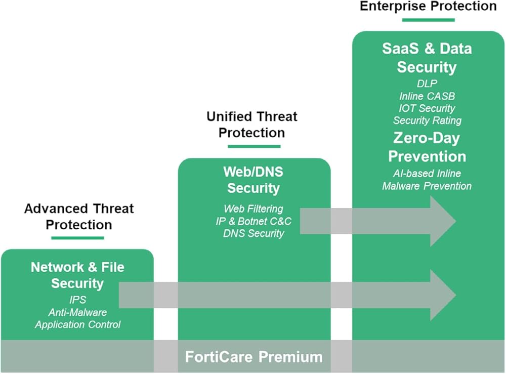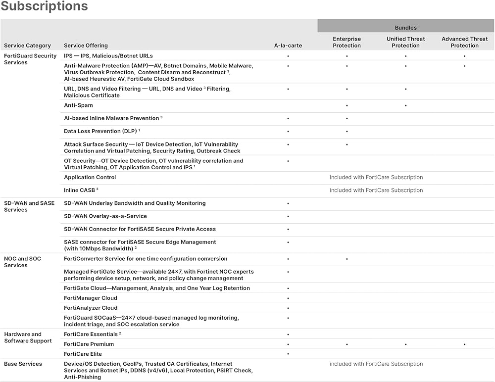 FortiGuard Security Services provide industry-leading cybersecurity protection for Fortinet FortiGate firewalls, helping businesses stay ahead of evolving threats. With real-time threat intelligence, AI-powered security, and automated protection, FortiGuard services safeguard your network from malware, ransomware, phishing, and unauthorized intrusions. Designed for seamless integration with FortiGate firewalls, these security services ensure optimized performance and hassle-free deployment. Powered by FortiGuard Labs, these services leverage AI-driven threat intelligence to detect and neutralize emerging cyber threats before they impact your business. Advanced web and content filtering prevent access to malicious websites, block phishing attempts, and enforce security policies to protect users and critical data. Automated security updates ensure your defenses remain up to date, providing continuous protection without manual intervention. Whether you're a small business, enterprise, or managed service provider, FortiGuard Security Services offer scalable solutions tailored to your needs. With comprehensive intrusion prevention, malware detection, and proactive threat mitigation, you can focus on running your business while FortiGuard handles your cybersecurity. Choose FortiGuard for reliable, real-time network protection that keeps your business secure.