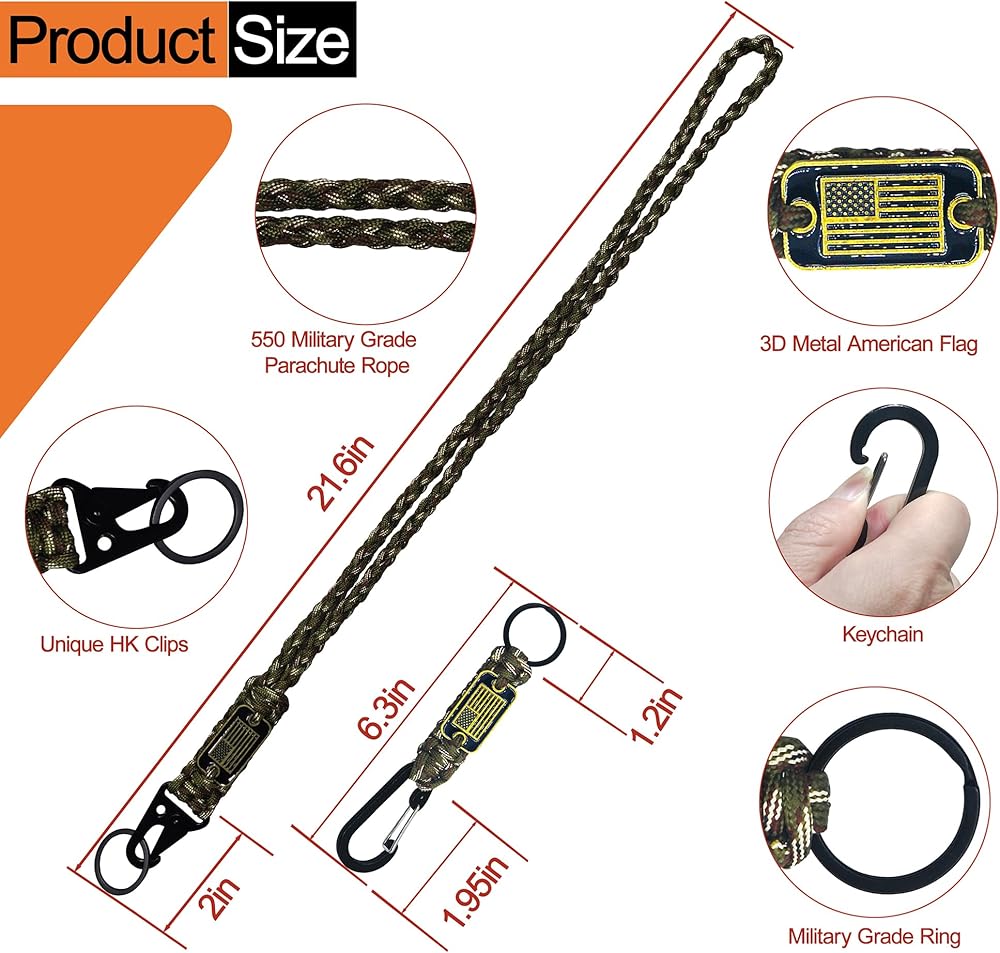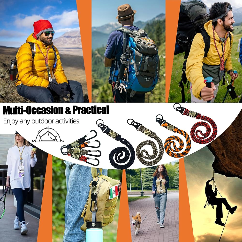 【Multi-Occasion & Practical】As a cool lanyard key chain, you can connect your keys, ID badges, camera, flashlight, wallet, whistle etc. You can also remove the parachute rope, which can be used to tie shoes, hang clothes, fix things, and even tent lines. You can easily and confidently enjoy any outdoor activities!