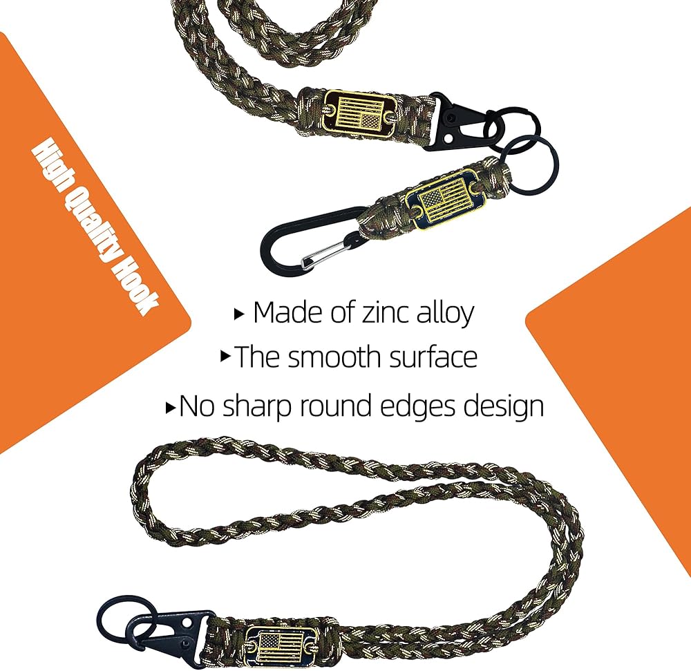 【Upgraded High Quality Hook】Our paracord neck lanyard keychain is made of zinc alloy, the smooth surface and no sharp round edges design are friendly for carrying, they are durable for many times and long-term use, and the black coating can prevent rust