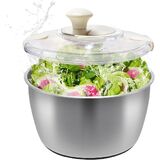 Food grade stainless steel design: The outer bucket is made of 304 stainless steel, which is resistant to corrosion and does not rust, and can directly contact the food materials; Mesh inner bucket accurate water filtration, outer bucket anti-splash design, dehydration and drying two in one.
