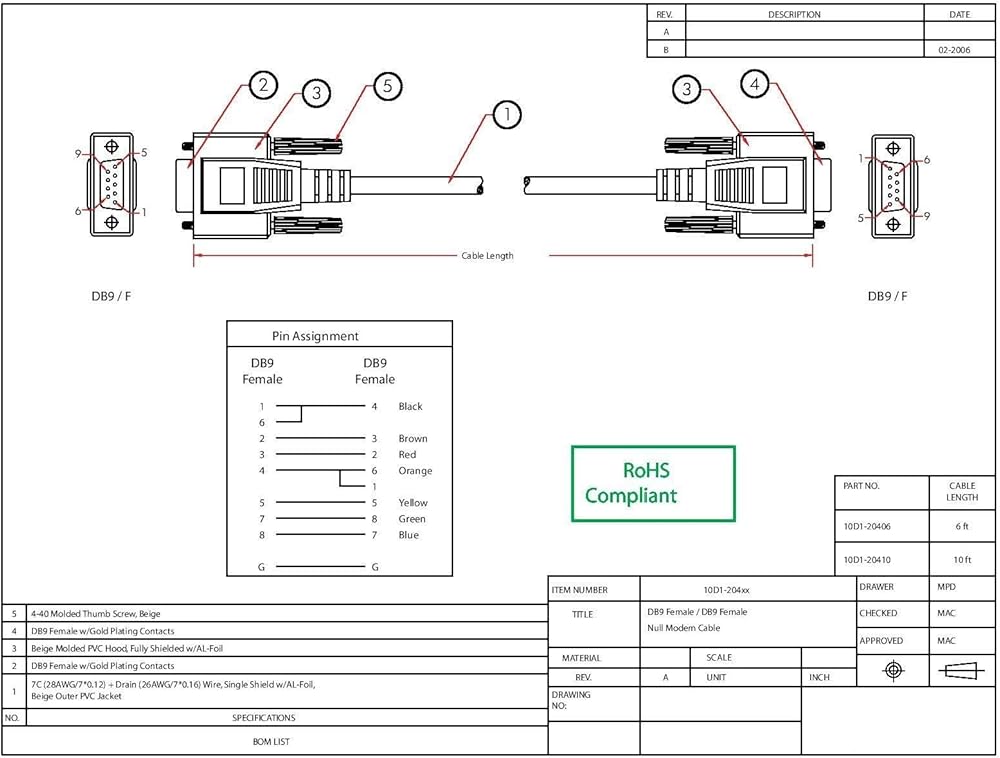 HIGH QUALITY MODEM CABLE: Typically used to transfer data from one PC directly to another PC. This male to female serial cable is solidly constructed, UL rated and RoHS Compliant.