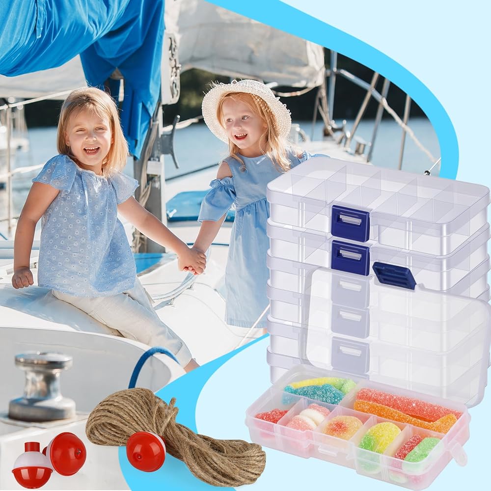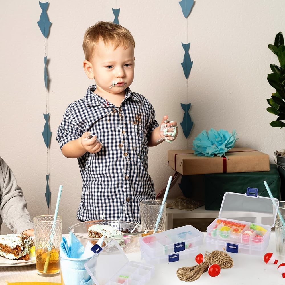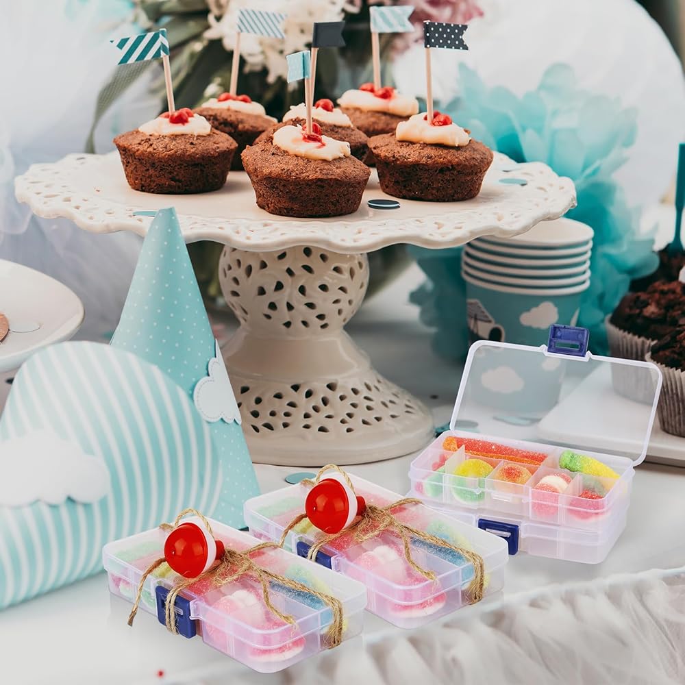 Tackle Boxes: our divider storage container measures about 5.12 x 2.76 x 0.9 inches, each comes with a removable tray, ideal for storing small fishing parts and tackles and party candy, and to keep everything well organized