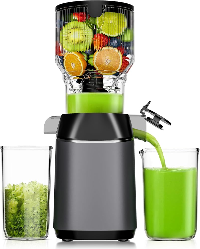 【Slow Cold Press Juice & Slag Juice Separation】Our slow masticating juicer utilizes cold press technology to gently extract juice, minimizing damage to the fruit's cellular structure. This preserves more nutrients, leading to a fresher, more nutritious juice with significantly less oxidation and foam. Plus, our innovative double-layer filtration system ensures a thorough separation of pulp from juice, virtually eliminating clogging and leaving no residue. Every drop is pure goodness, making your juice taste absolutely incredible.