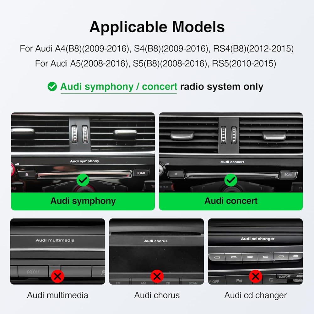 【OEM Fit for Audi A4/S4/A5/S5】 Fit for 2009-2016 Audi B8/B8.5 Models .Direct replacement for Audi A4/S4/A5/S5/RS4/RS5 with Multimedia MMI. Confirm compatibility by sending MMI system photos to us – we'll verify to tell you
