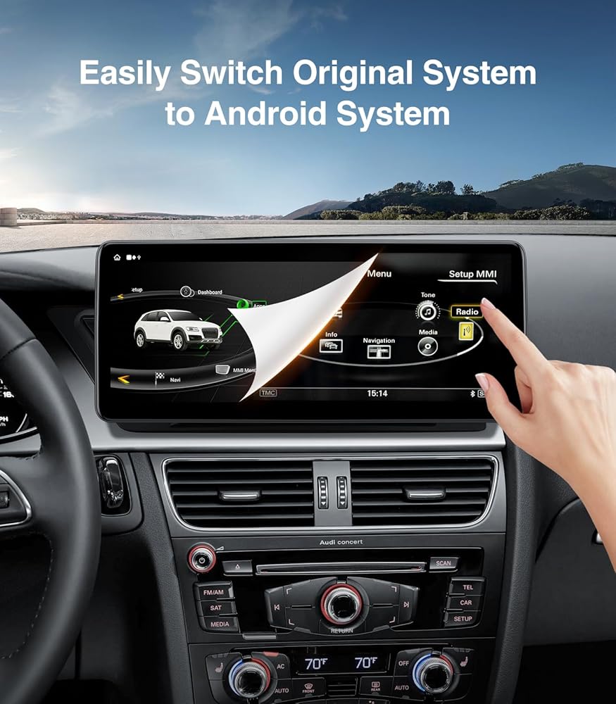 【Dual OS: OEM Audi Radio system + Android 13.0】 Switch Between Factory System & Android Apps. Access OEM navigation/car settings via MMI knob .Keep OEM CD player, FM radio ,Bluetooth,Radar while adding Netflix/YouTube. For Audi A4 owners: Upgrade your stereo without losing OEM functions