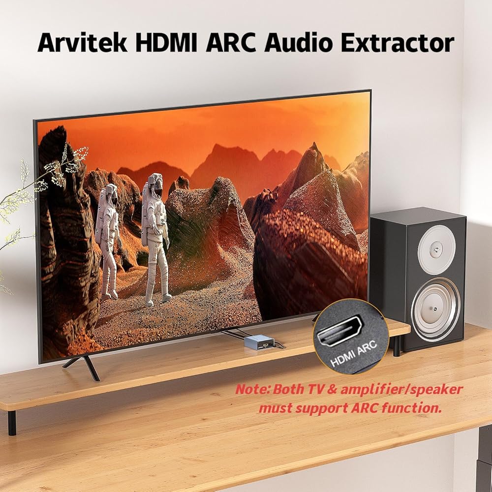 【Work as HDMI ARC Audio Extractor】The ARC (Audio Return Channel) function enables your TV to transmit audio to an external sound system (such as an amplifier or receiver), delivering an immersive home theater experience instead of relying on your TV's built-in speakers. Note: Both your TV and amplifier must support ARC. Does not support eARC.