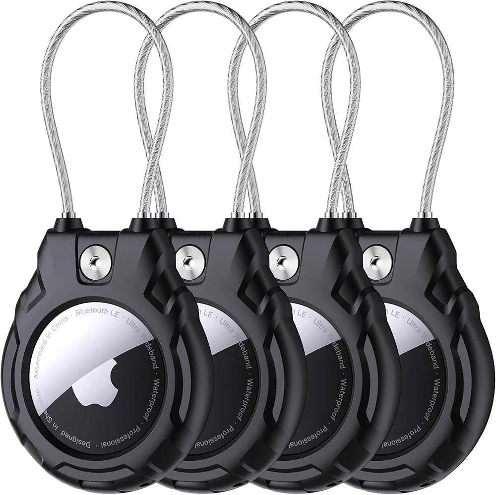 for Airtag Holder with Wire Cable(1st & 2nd Generation), 4 Pack Ultra-Durable Lockable Case for Apple AirTag, Waterproof Keychain Holder for Luggage, Keys, Backpacks, Cars, Bags, and Kids