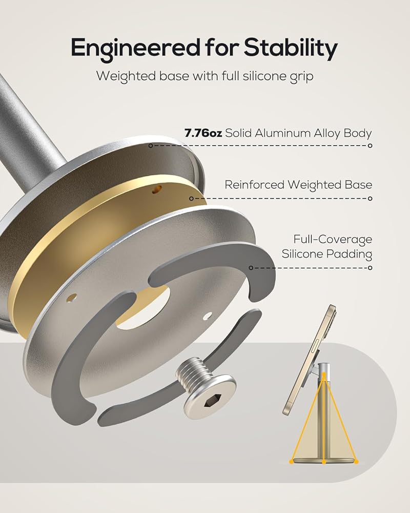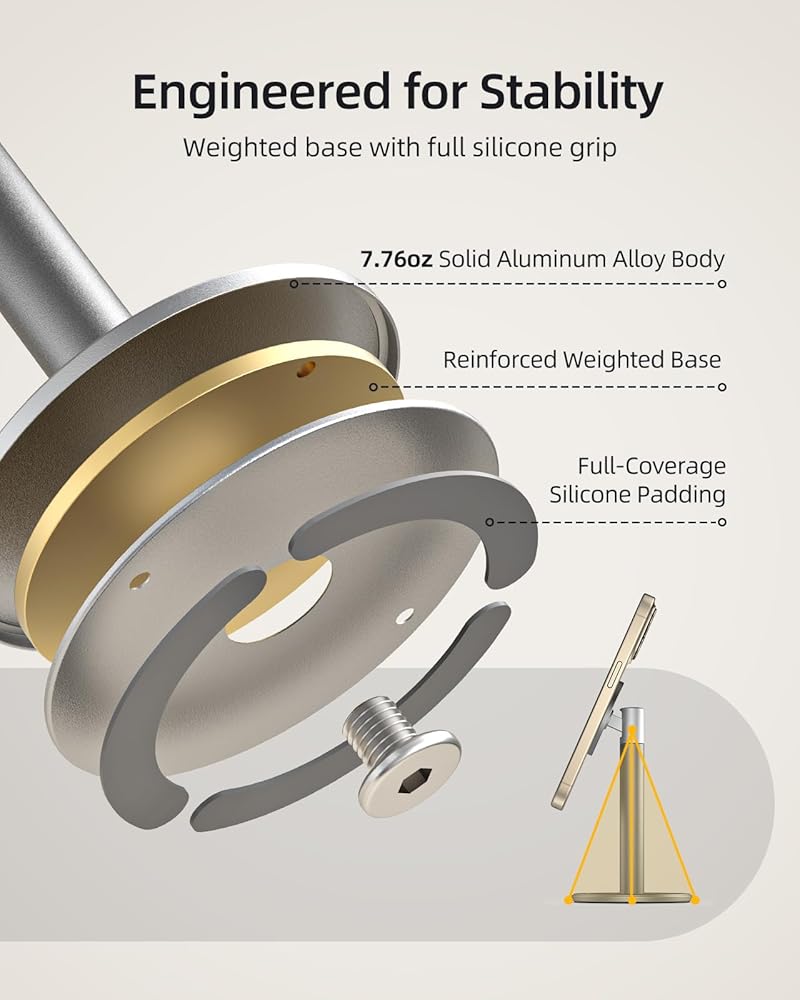 7.76oz Duty Full Aluminum Metal Base: Different from light plastic materials, this magnetic stand crafted entirely from heavy-duty aluminum alloy, with superior quality and absolute stability, 2000+ cycle stability test and zero shake, guarantees your screen touch.