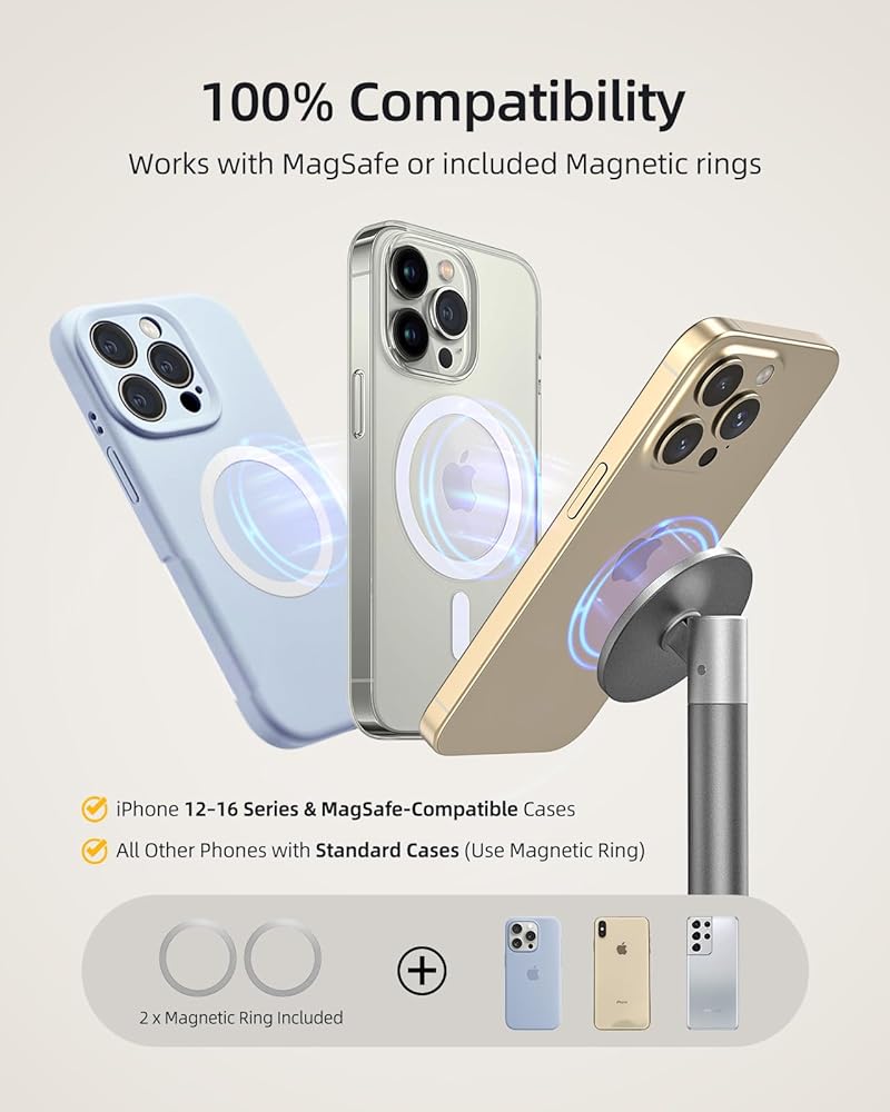 2 Magnetic Metal Rings Included: Instantly convert any phone case to MagSafe-compatible. Works with Phone 13-16 Pro Max series, and all smartphones (Please wait 1+ hours after attaching the metal ring for full magnetic strength).