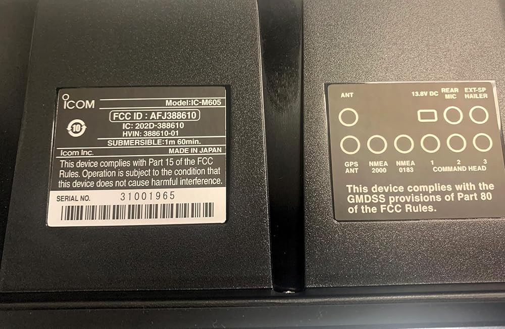 The Icon M605 11 is a fixed mount VHF radio with 25W output power and is IPXS waterproof rated. The M605 includes a built-in horn/foghorn, 30W listen back hailer and a GNSS antenna.