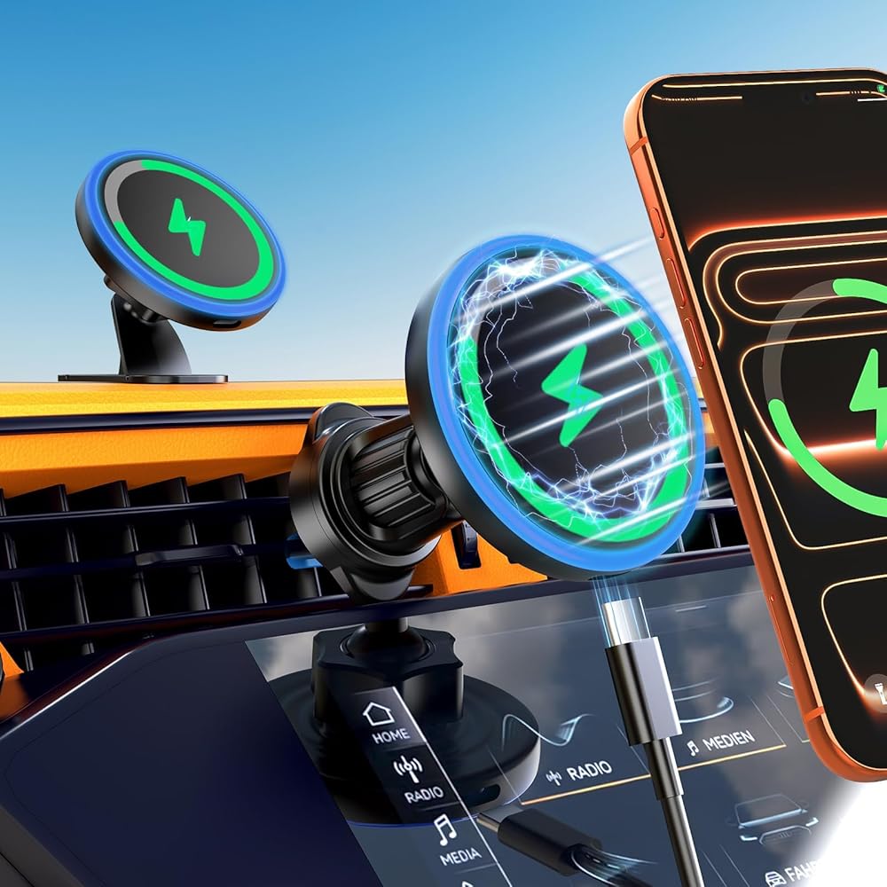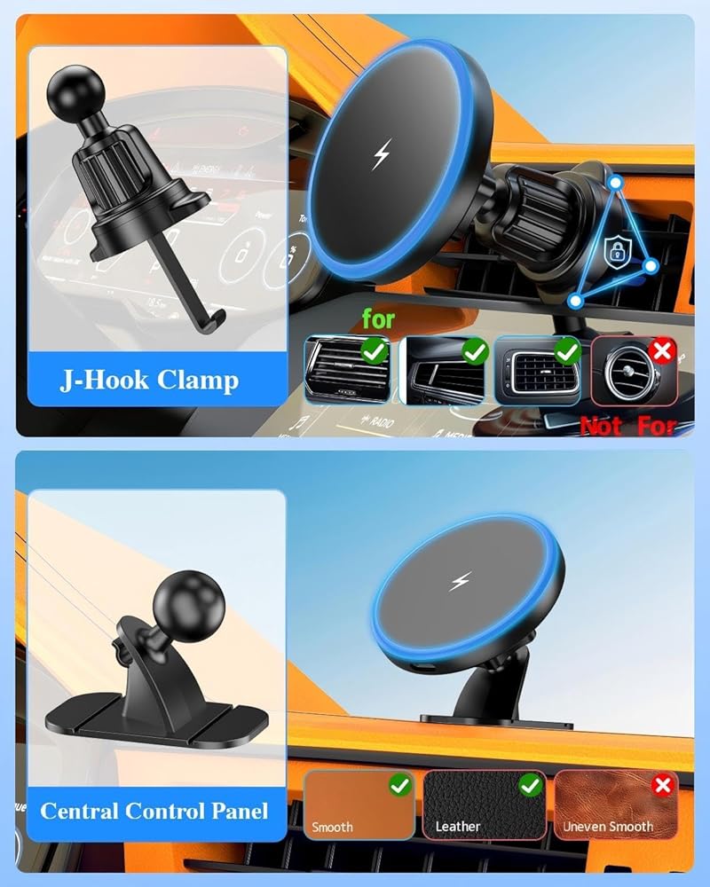 【Upgraded Magnetic Power】Experience a secure and reliable magnetic connection that firmly locks your phone in place, ensuring it stays steady even on bumpy roads. With its strong hold, you can enjoy hassle-free charging and worry-free driving without any interruptions or the risk of your phone slipping