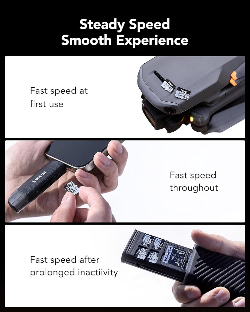 Video Recording as Detailed as You Are. Rated V30 & U3, the Lexar Silver Plus micro sd UHS-I Card is built to capture burst photos without missing a shot and smoothly shoots up to 4K 60fps ultra HD video