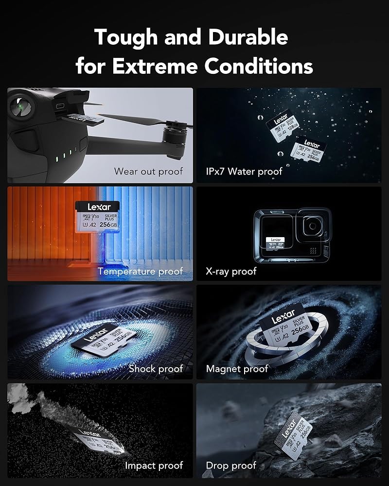 Reliability and safety. Made to last, the micro SD card is resistant to temperature, X-ray, vibration, magnet, shock and drops, so you can be sure to take it wherever your shooting takes you. This micro SD card comes with Lexar Recovery Tool to help you recover accidentally deleted files and is backed by a limited lifetime warranty