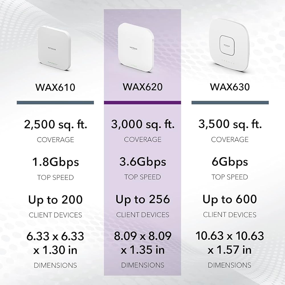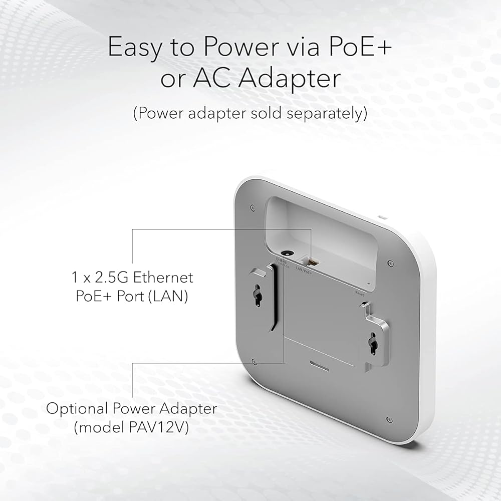 Introducing the NETGEAR WAX610 Dual-Band WiFi 6 Access Point, your solution to powerful, future-proof wireless networking. Leveraging the latest WiFi 6 (802.11ax) technology, this access point ensures faster speeds, higher capacity, and significant reductions in network congestion, transforming your internet experience. With dual-band connectivity operating on both 2.4 GHz and 5 GHz bands, it provides flexible and enhanced performance for all your devices. Equipped with both Gigabit and 2.5 Gigabit Ethernet ports, the WAX610 delivers high-speed wired connections, optimizing your network performance for seamless data transfer and communication. NETGEAR's Insight Cloud Management enables effortless control and monitoring of your network from anywhere, ensuring you always have visibility and management at your fingertips. Security is paramount with the WAX610, thanks to WPA3 encryption that safeguards your network from unauthorized access while maintaining data privacy. The access point is designed for simplicity, featuring an easy setup process and an intuitive management interface, making it straightforward to install and maintain. Protect your investment and enhance your wireless networking experience with Cloud Care's 3 Year Warranty SupportPlus included, ensuring peace of mind and exceptional support.