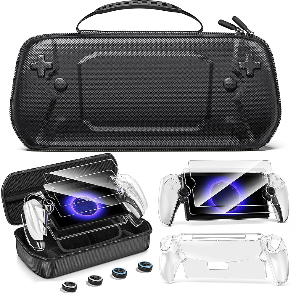 Hard Carrying Shell Case for PlayStation Portal Remote Player, Organizer Protective Travel Bag Cases for Playstation 5 with Hard PC Clear Cover Skins Set for PS5 Portal, 2 Screen Protector & 4 Thumb Grip