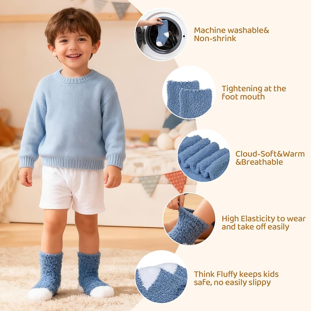Fuzzy Warm Design: Socks for toddler girls-Thick fabric and lining, short fluff on the surface, super warm, durable and comfortable, giving the baby a warm winter. It is the best gift for children in winter.