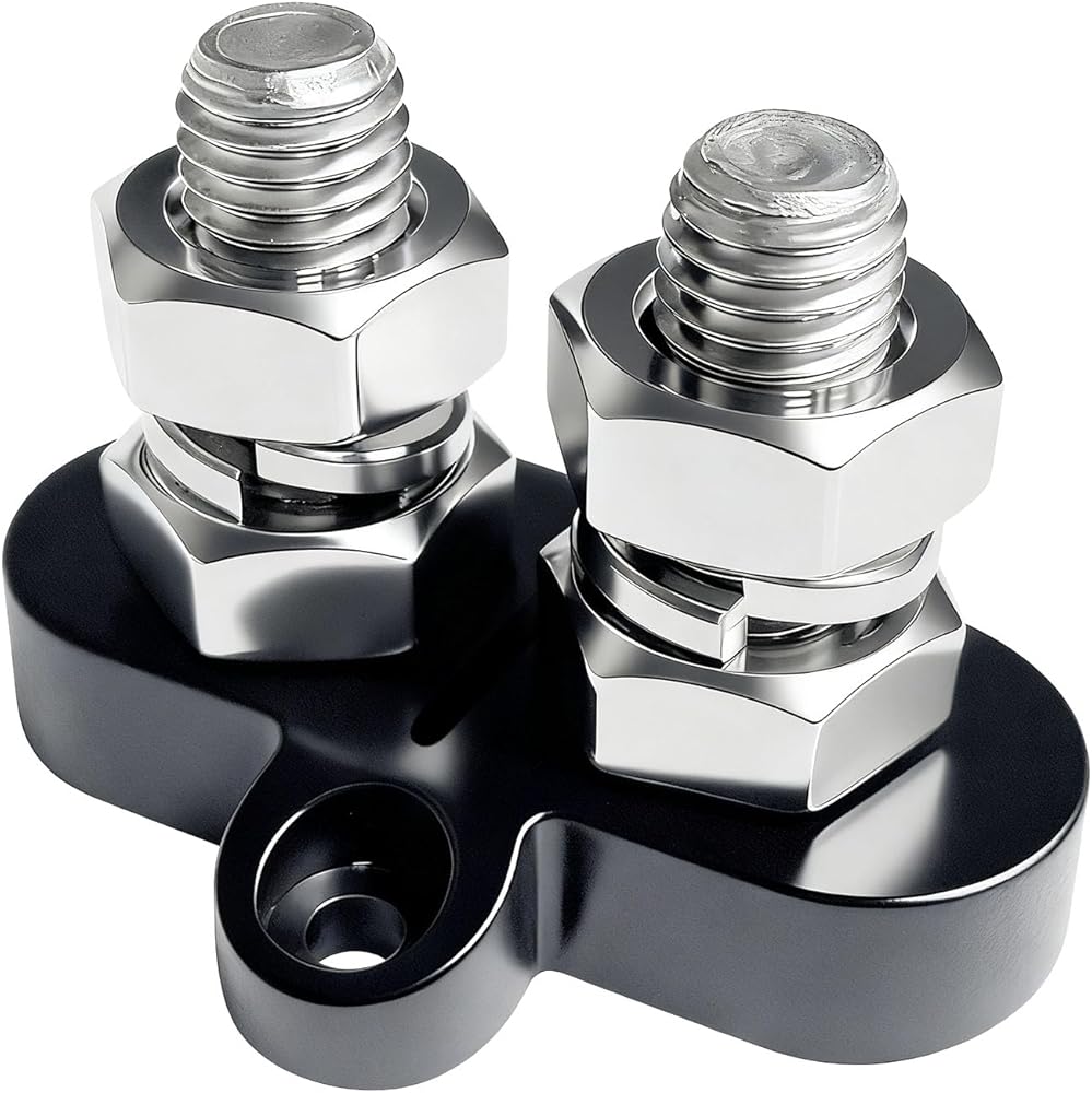 High Quality:3/8 "ground studs battery junction post, lock washer, and nut. Glass Fiber reinforced Nylon base ensures great mechanical strength and durability. The ground junction block/ rv single post bus bar 12v made of glass fiber reinforced nylon, durable and practical to use.