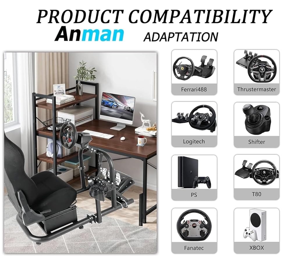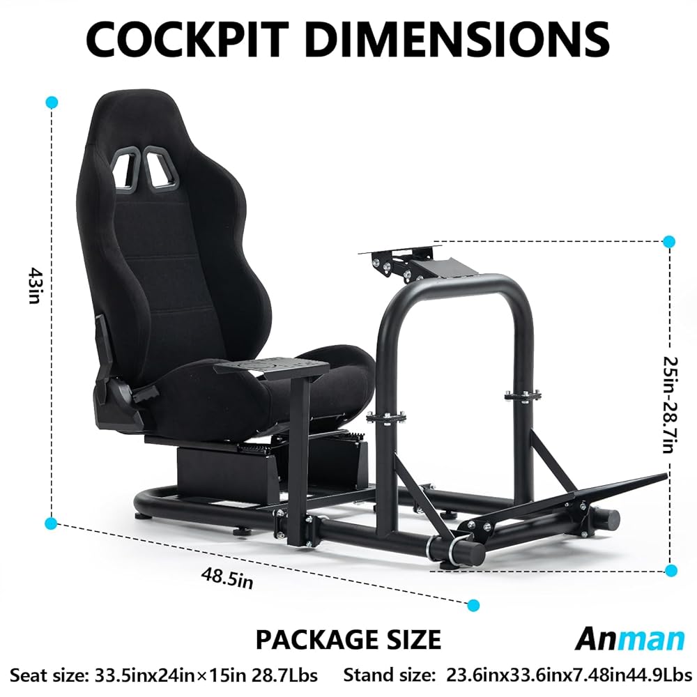 Anman Stability Racing Simulator Cockpit with Gaming Chair Fit for Logitech/Thrustmaster/Fanatec G27,G923,T248,CSL-DD Racing Wheel Stand Without Wheels,Shifter and pedals
