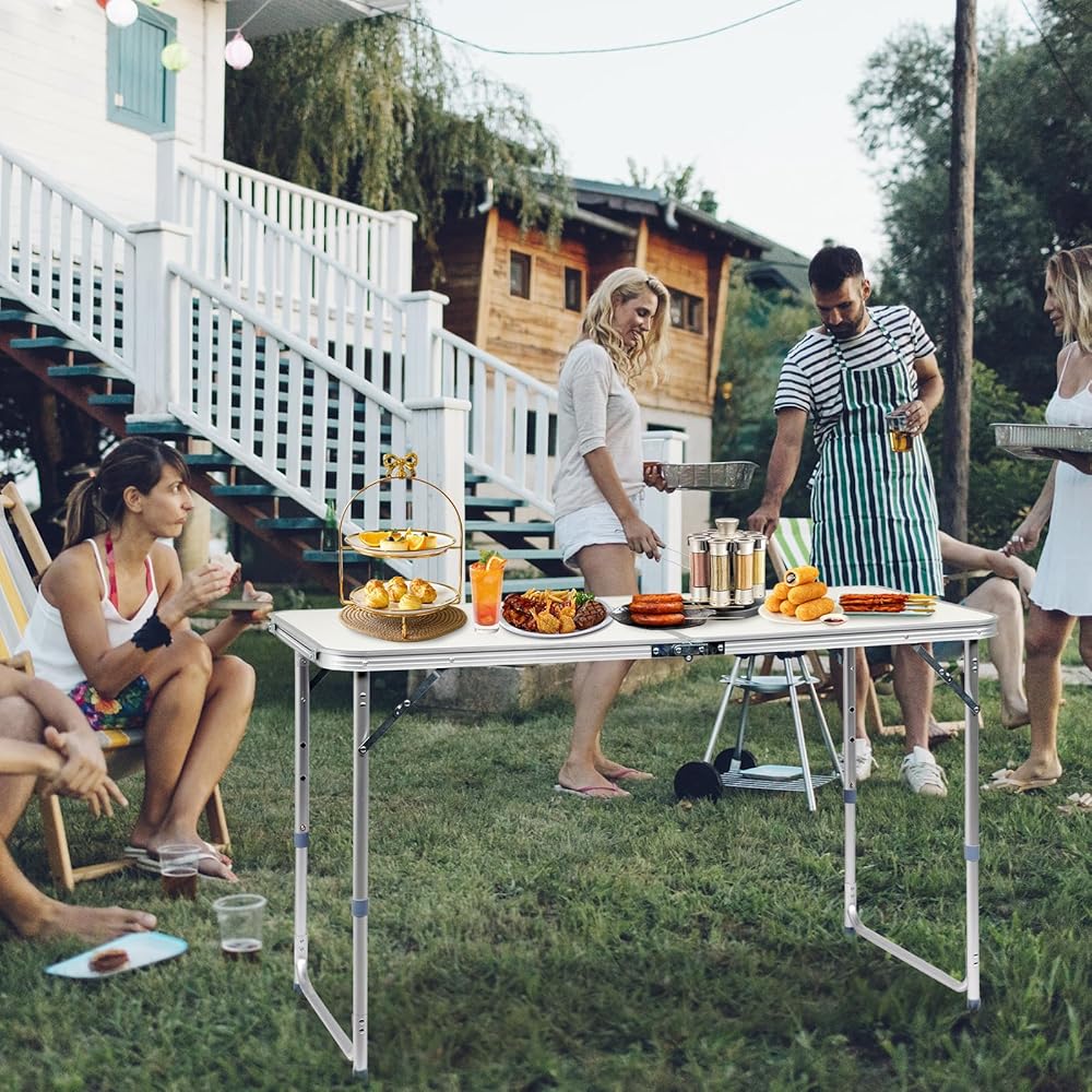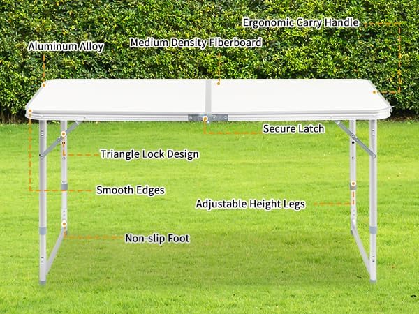 【Multi-functional Use】 Our folding table is easy to unfold and fold, suitable for various indoor and outdoor environments. Whether it is used as a temporary desk, dining table, or game table at home, or for camping, picnics, block parties, etc., it can meet your requirements