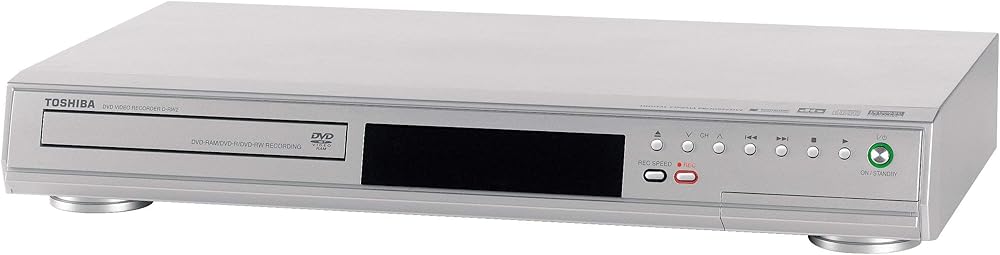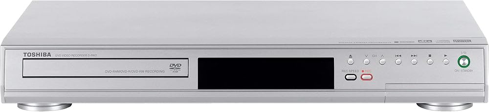 Single-disc DVD player/recorder with timer and one-touch recording; measures 17.1 x 2.6 x 9.6 inches (WxHxD)