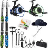 Tripquips 2 Packs Fishing Rod and Reel Combos, 6.9ft Telescopic Fishing Rod Combos with Fishing Gear, Fishing Pliers, Fishing Lures, Fishing Hat Fishing Pole Set