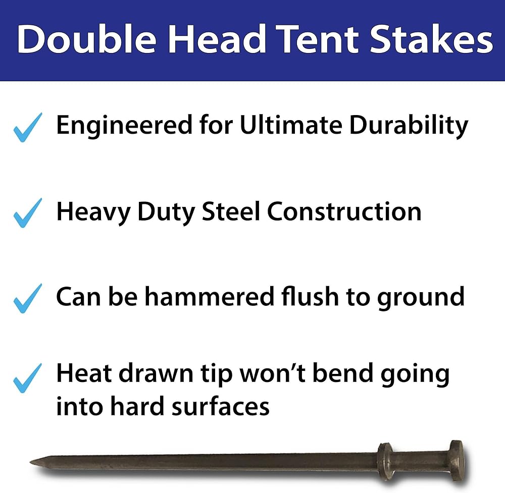Double Head Tent Stakes - Heavy Duty Steel Tent Stakes, Versatile Ground Spikes to Anchor Commercial Inflatables, Party Tents, and Outdoor Camping Shelters, 1 1/8 x 40 Inch, 4-Pack