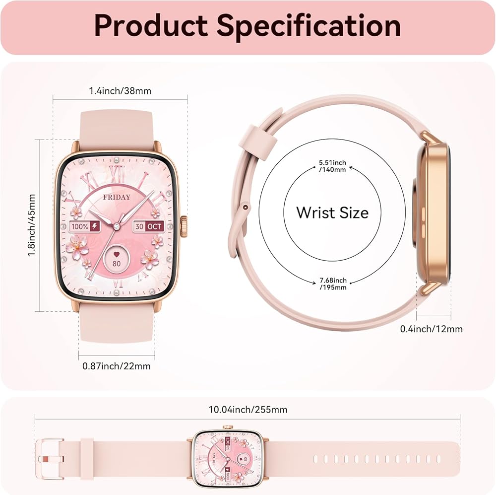 【Convenient Reminders】Alarm, weather, drinking reminder, and schedule functions are all included. The smart watch for women can also remind women of their health cycles to track period and record changes in periods, becoming an assistant to your life. And more features are waiting for your discover