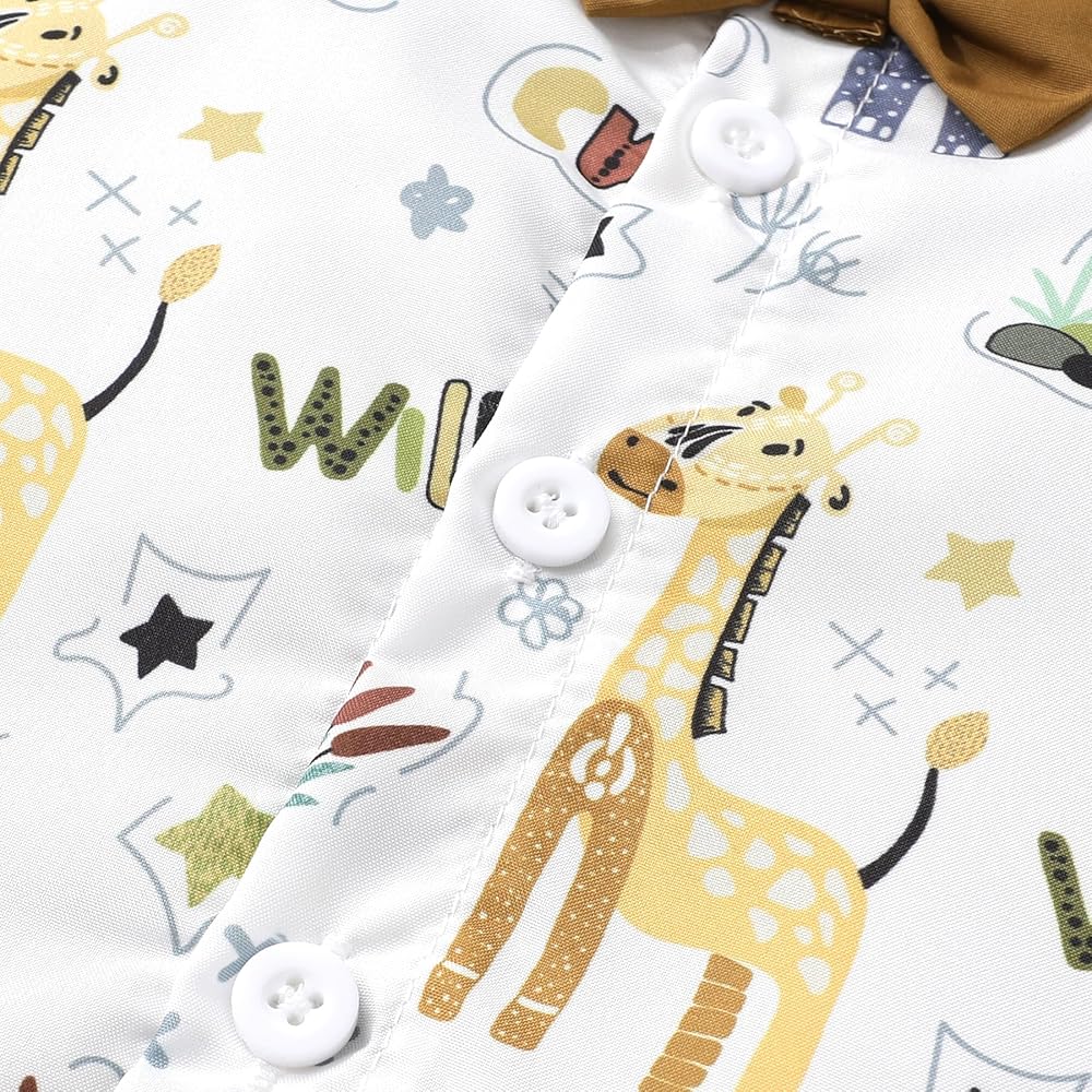🐘Feature: fashion and cute animal print, Button-Down design, turn down collar, short sleeve blouse, solid shorts,your cool boy summer standard.