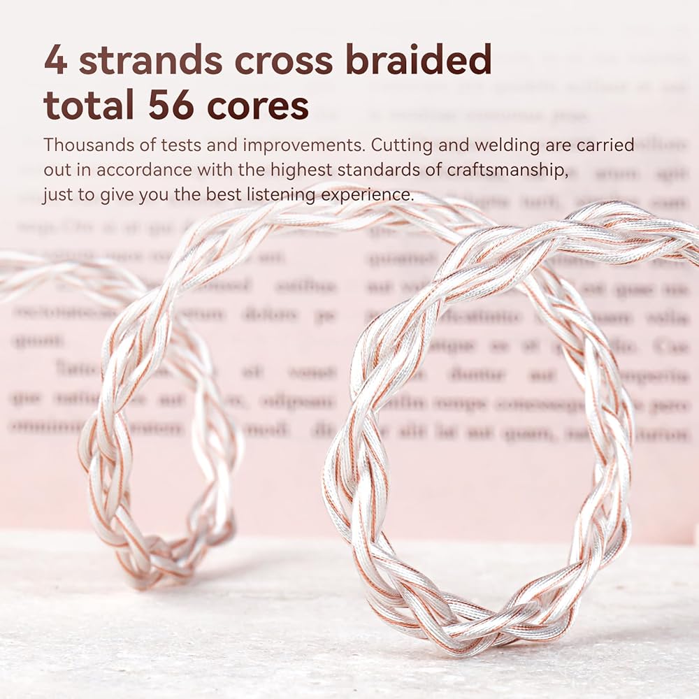 【High-Quality Material】6N Silver-plated OFC HIFI upgrade cable offers excellent conductivity for smoother signal transmission. The 4-strand high-density braiding process enhances the cable's tensile strength, effectively preventing tangling and knotting. The gold-plated plugs and pins ensure consistent contact, which ensuring stable and smooth signal transmission, which effectively blocks external electromagnetic interference, delivering pure and pristine sound quality, the three frequencies can be more vivid through this cable.