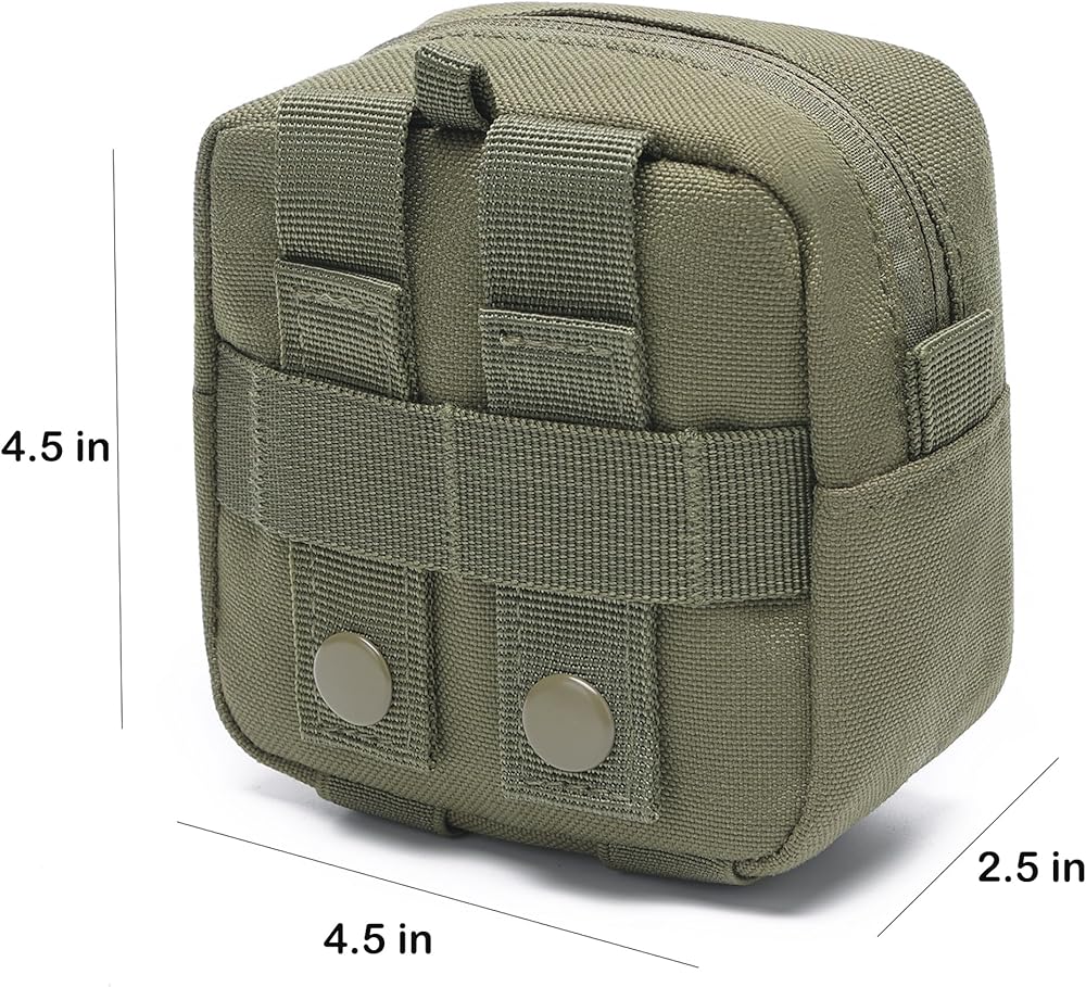 TOUGH QUALITY: Admin molle pouch size: 4.5" x 4.5" x 2.5". Made of tough, durable and lightweight 600D nylon. Sturdy double zippers for the top to the sides quickly ,easily see what you have. The sturdy Molle system and copper snap button make it more firmly attached to other tactical gears