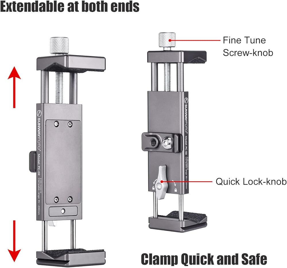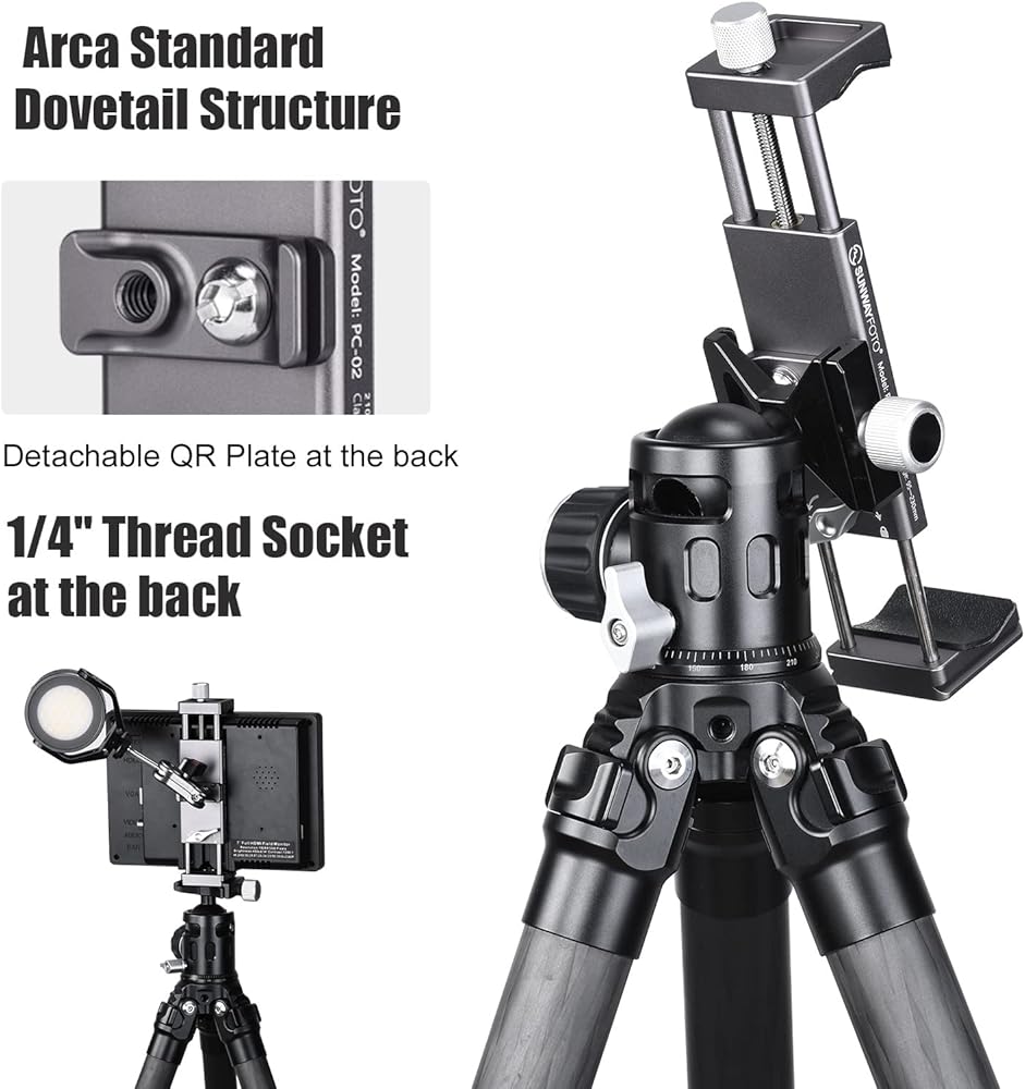 Via the dovetail structure at the back and base, the PC-02 is compatible with ballhead for multi-angle adjustment.