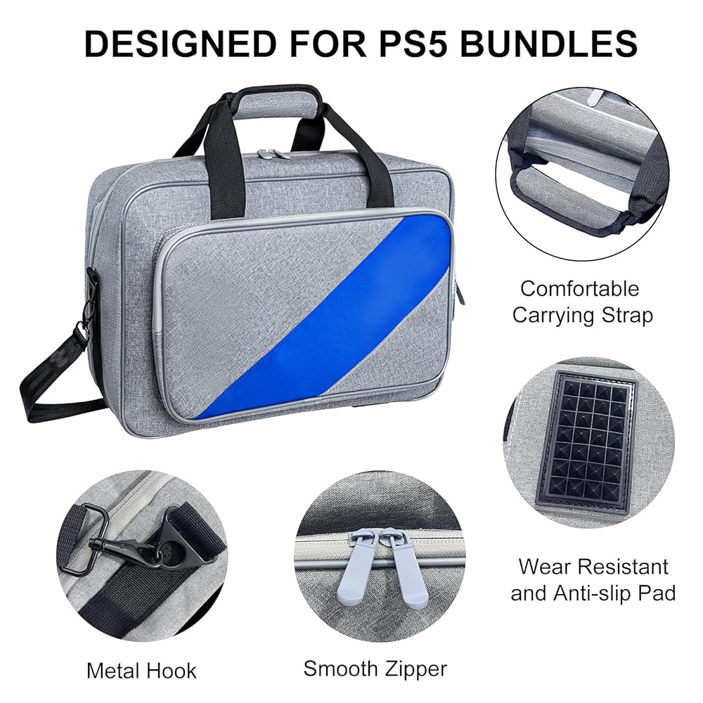 Custom Fit for PS5 Console:Specifically designed for PS5 (Disc/Digital Edition), this carrying bag offers partitioned storage to securely organize your console and accessories. Durable, waterproof, and scratch-resistant materials ensure lasting protection.